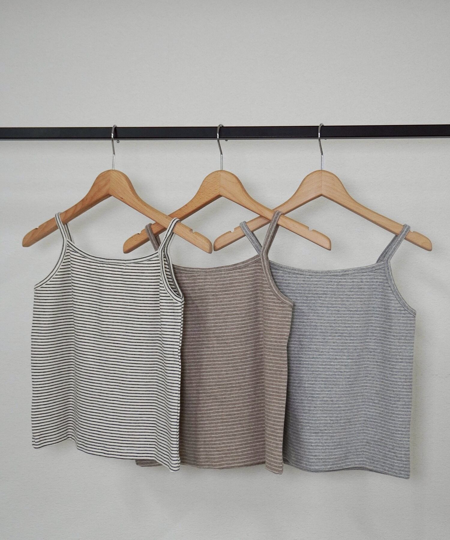 ボタン付きボーダーキャミ 5280979は、シンプルでありながら個性的なボーダーデザインが特徴のキャミソールです。