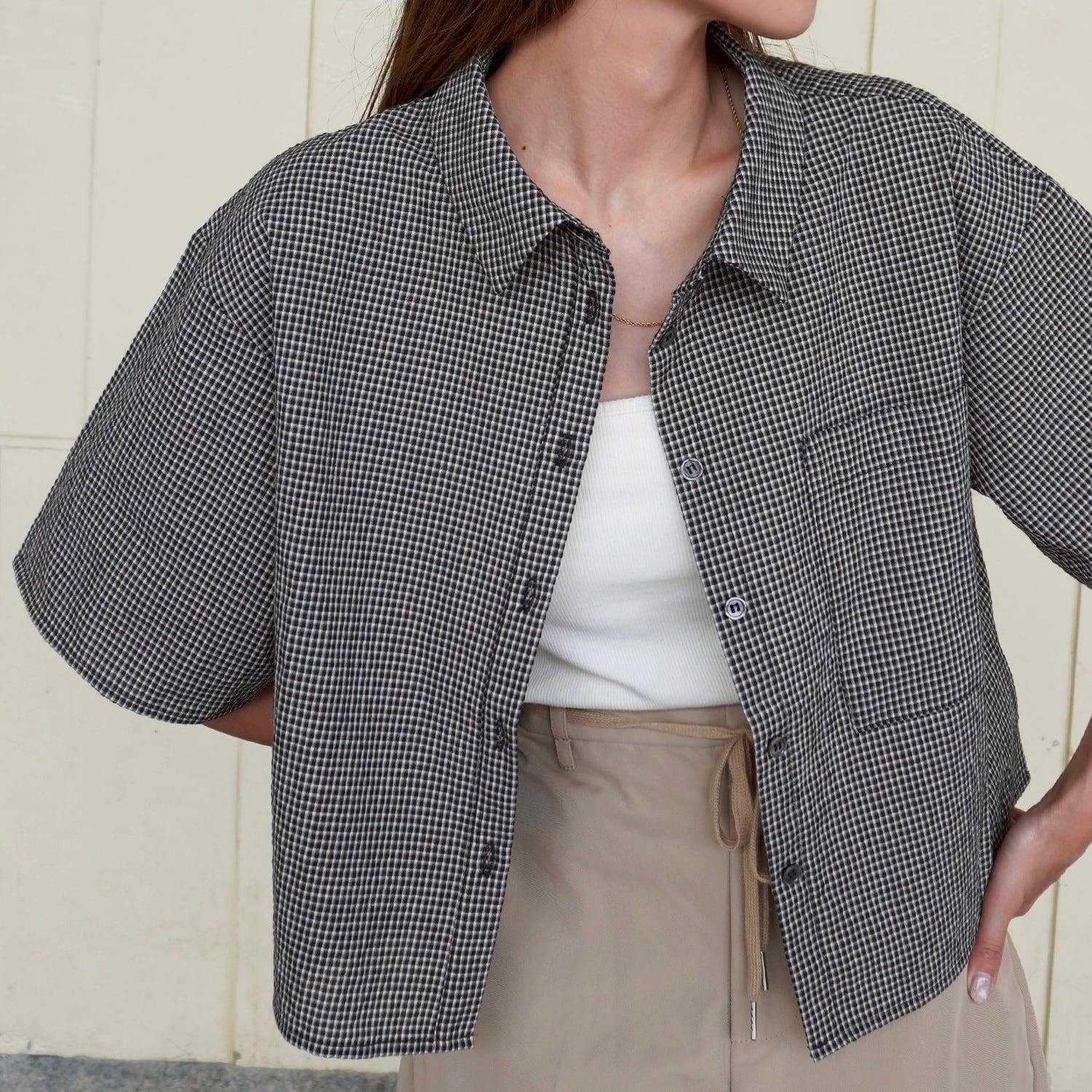 チェックハーフスリーブシャツ 5672608は、トレンドのチェック柄が目を引くハーフスリーブシャツです。