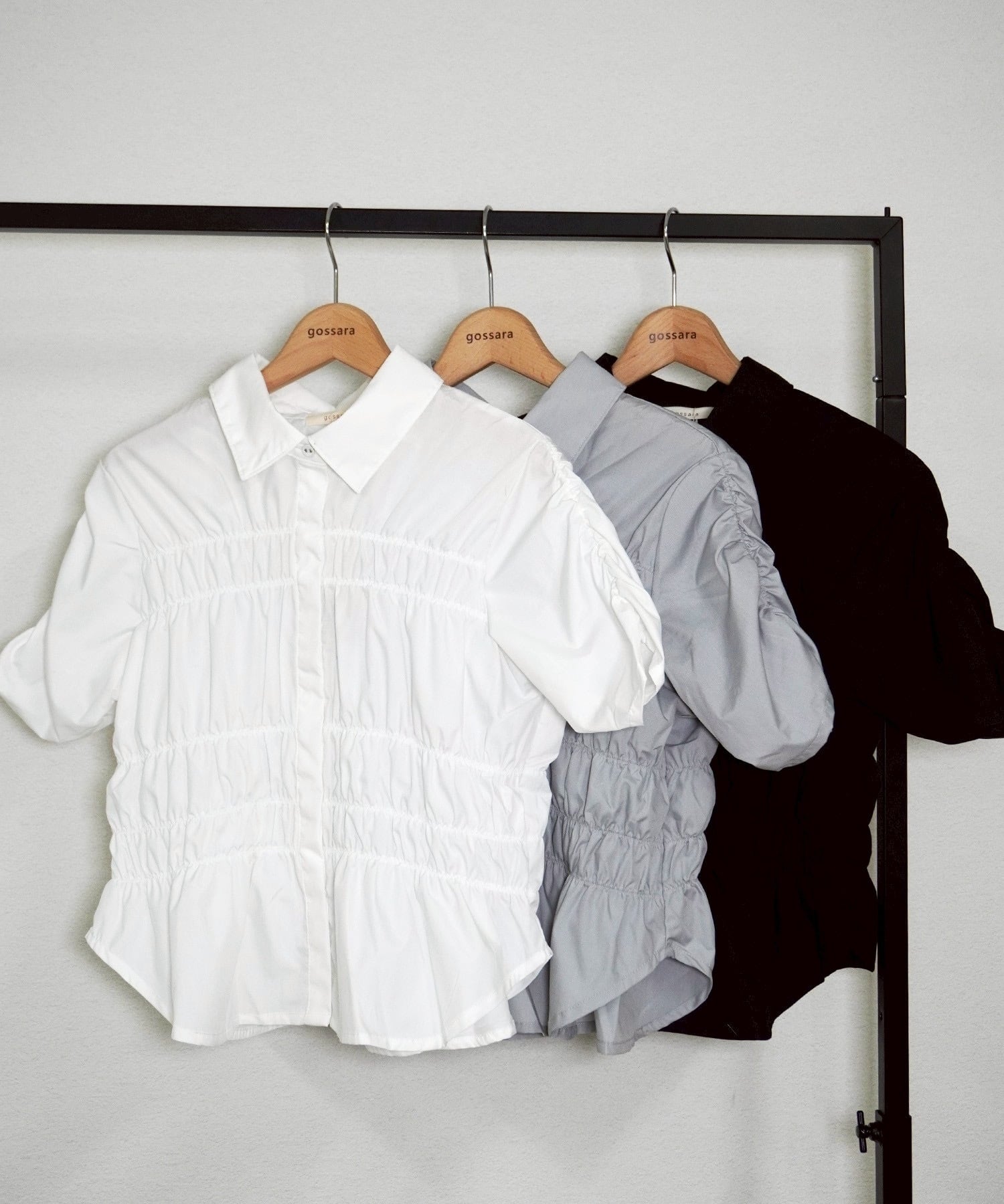 独自のシャーリングが、シンプルながらも印象的なスタイルを演出し、コーディネートに自然に溶け込みます。