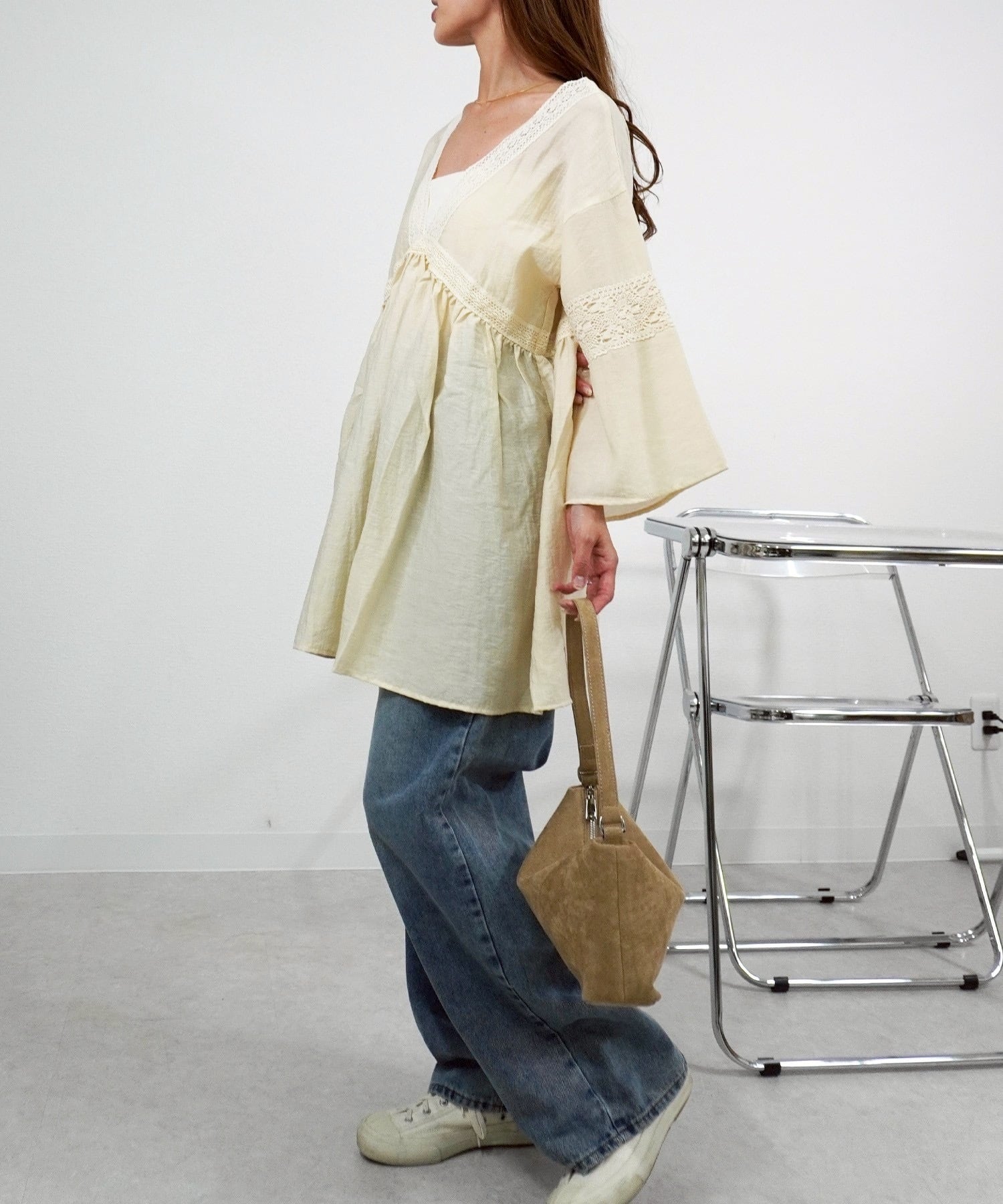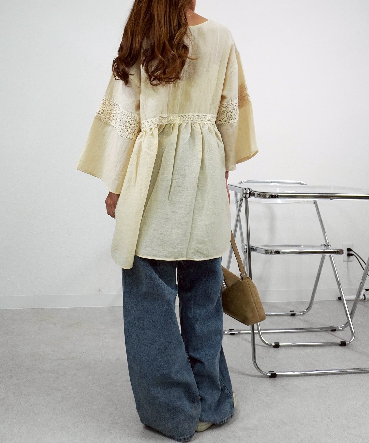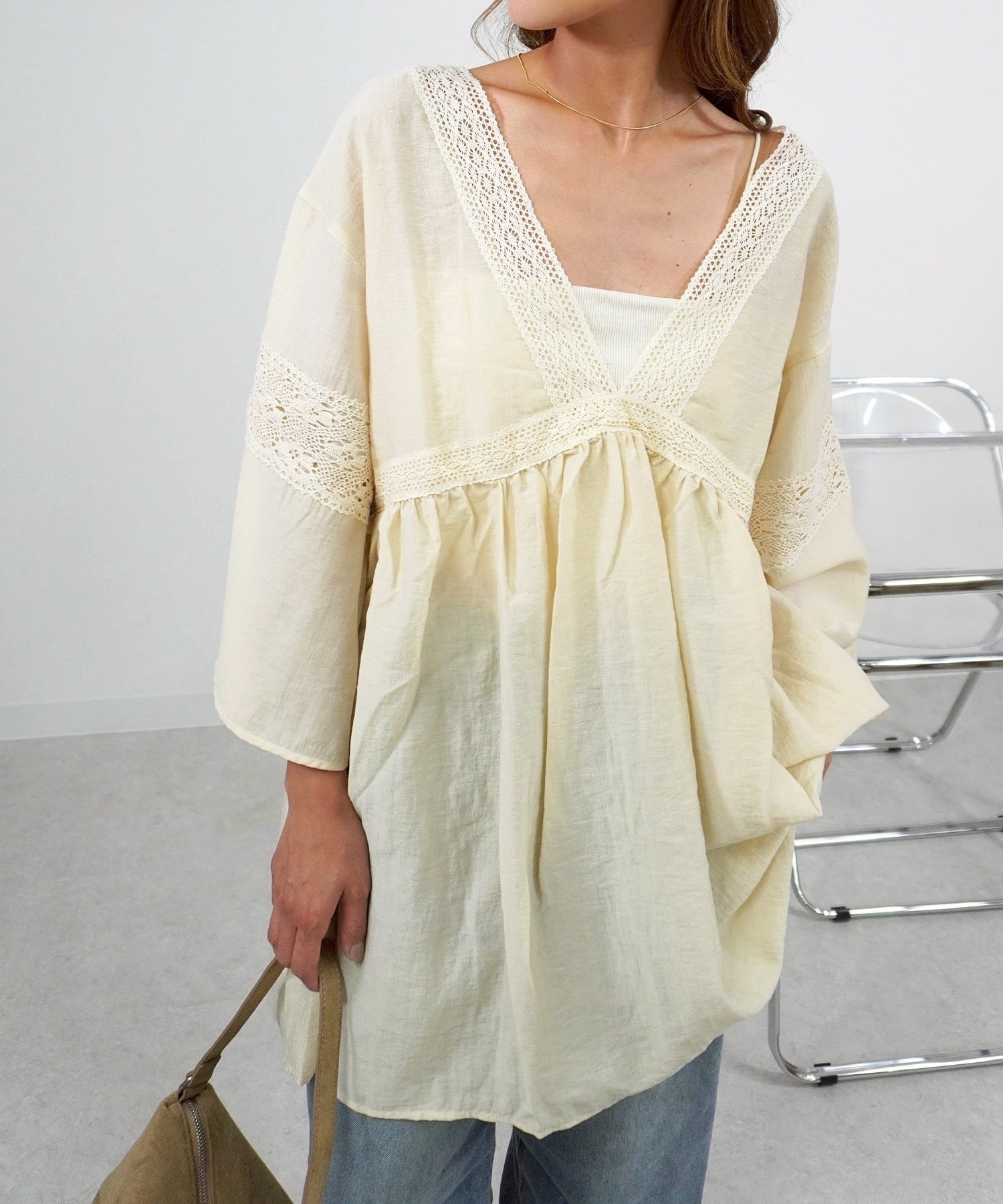 テープレース付ボリュームBL 5484505は、華やかなテープレースが施された魅力的なブラウスです!ボリューミーなシルエットと上品なデザインが、女性らしさを引き立てます。