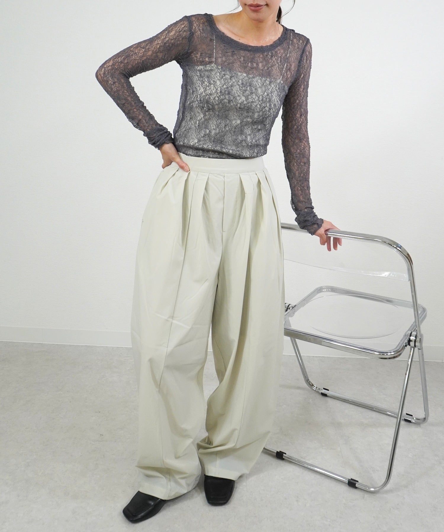 軽やかな着用感、そして優れた通気性が特徴のこのアイテムは、季節を問わず快適さを保ちながら、シンプルなボトムスとのコーディネートで魅力を引き立てます。日常使いはもちろん、特別なお出かけにもぴったりな一枚です!