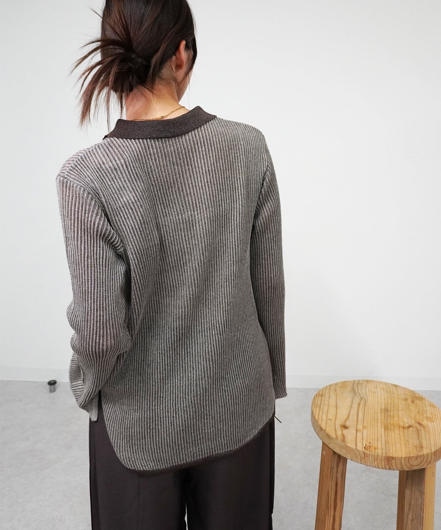 ニットストライプSH 5057043は、エレガントなストライプデザインが魅力のニットシャツです!柔らかなアクリル素材を使用しており、温かみのある肌触りが心地よい一着です。
