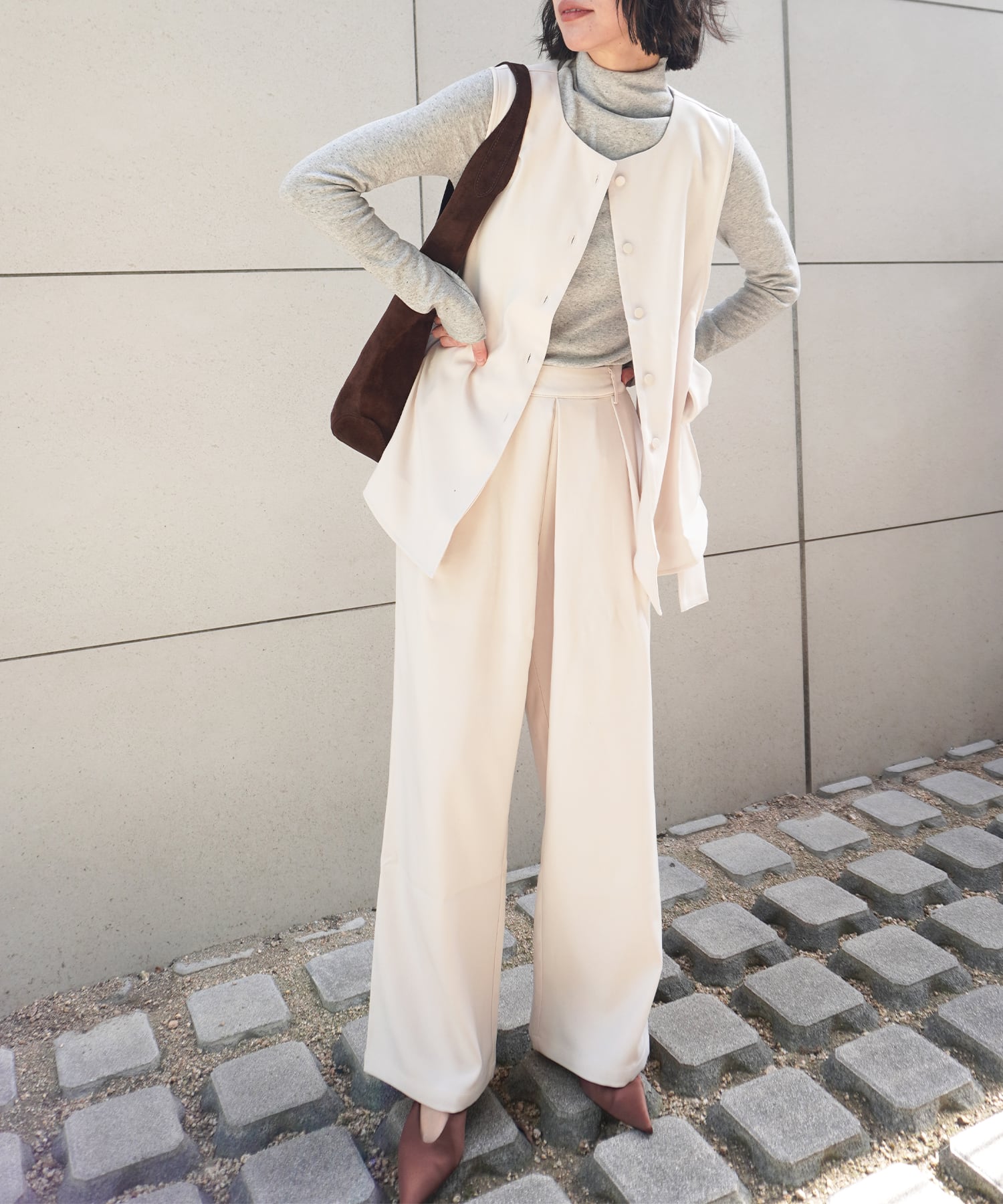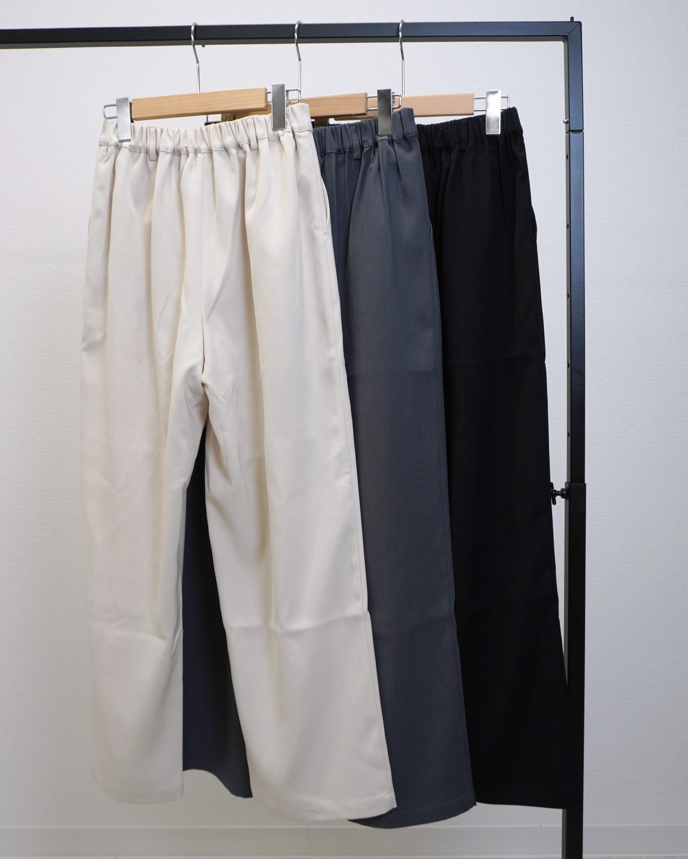 洗練された印象のタックワイドパンツは、しっかりとした生地感と、ほどよいゆったり感が特徴のアイテムです。ウエスト部分は一部ゴム仕様で、快適な着心地を提供します。シンプルなデザインながらも、タックが施されることで、立体感が生まれ、様々なコーディネートにも合わせやすくなっています!リラックスしたデイリースタイルからお出かけシーンまで幅広く活躍する一着です。あなたのワードローブに欠かせない存在となることでしょう。