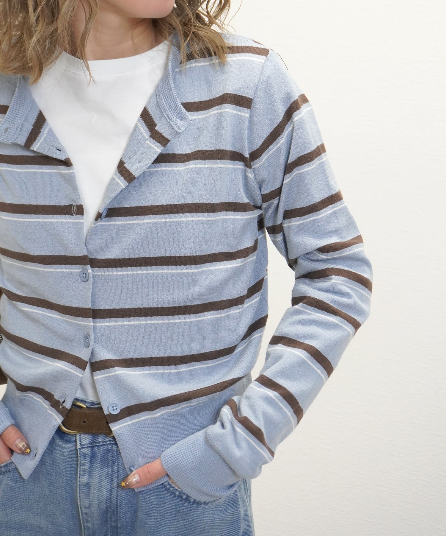 レーヨンナイロンボーダーCDは、上品なボーダーデザインが特徴の一着です。やわらかなレーヨン使用しており、肌触りが非常に心地よく、シーズンレスでお楽しみいただけます!リラックス感のあるシルエットが、デイリーコーディネートやカジュアルなお出かけにぴったり。また、重ね着にも最適なデザインで、アクセサリーとの相性も良く、さまざまなスタイルを楽しむことができます。このアイテムで、ぜひ新しいファッションを取り入れてみてはいかがでしょうか。