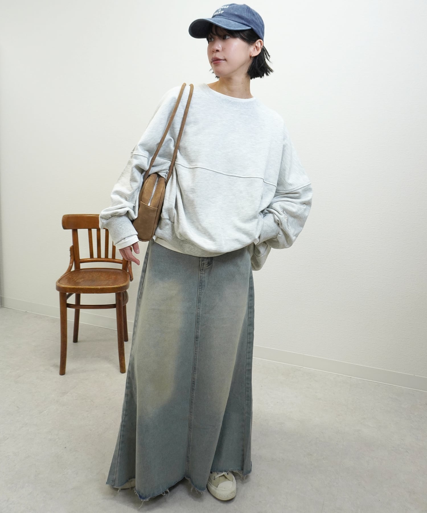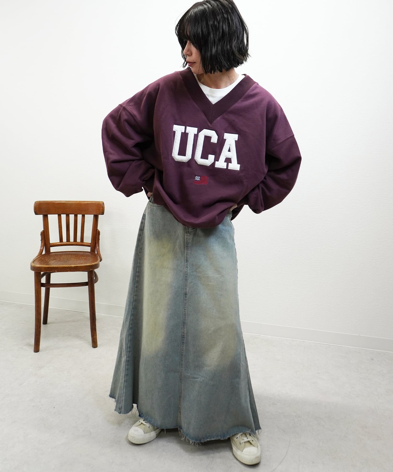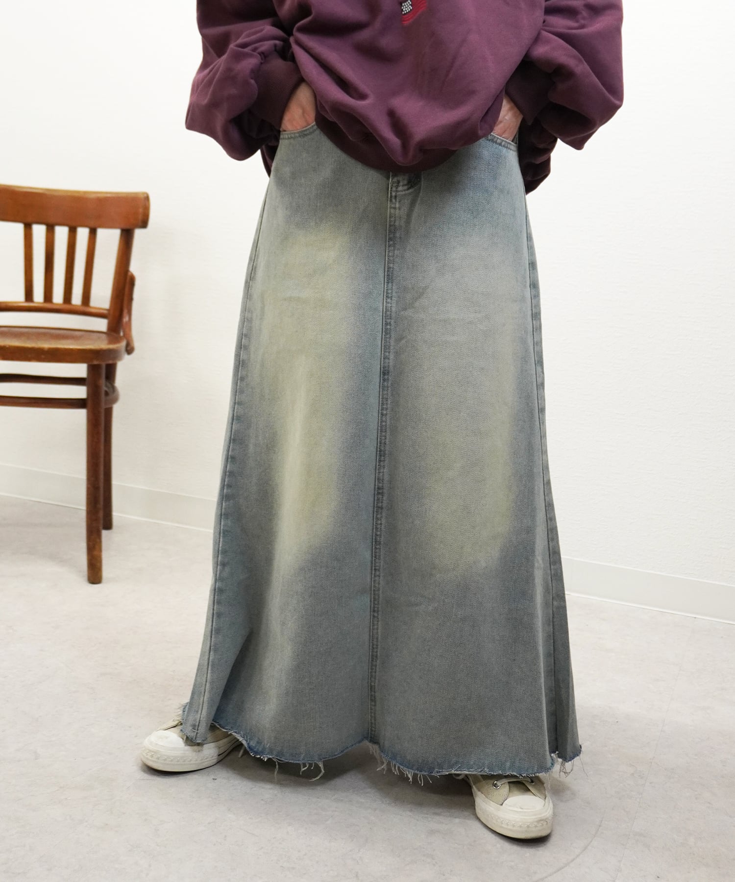 ビンテージ加工デニムSKは、独自の風合いとこだわりのディテールが魅力のスカートです!柔らかいコットン素材が心地よく、ビンテージ加工による味わい深い表情が特徴です。シンプルながらも存在感のあるデザインで、カジュアルスタイルに活躍すること間違いなし。Tシャツやブラウスと合わせて、あなたのスタイルを楽しんでみてはいかがでしょうか!