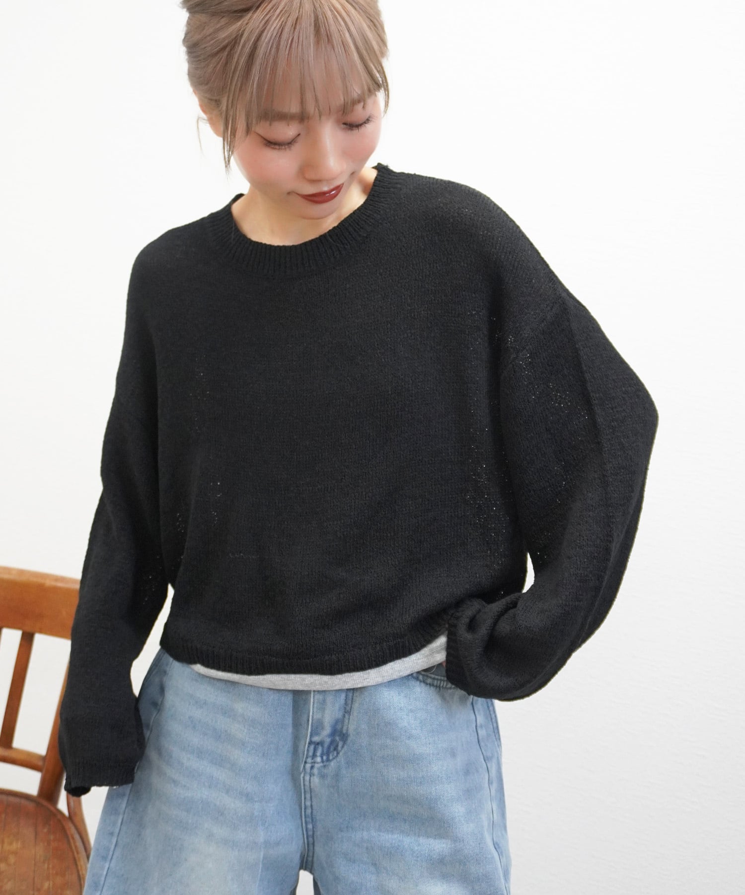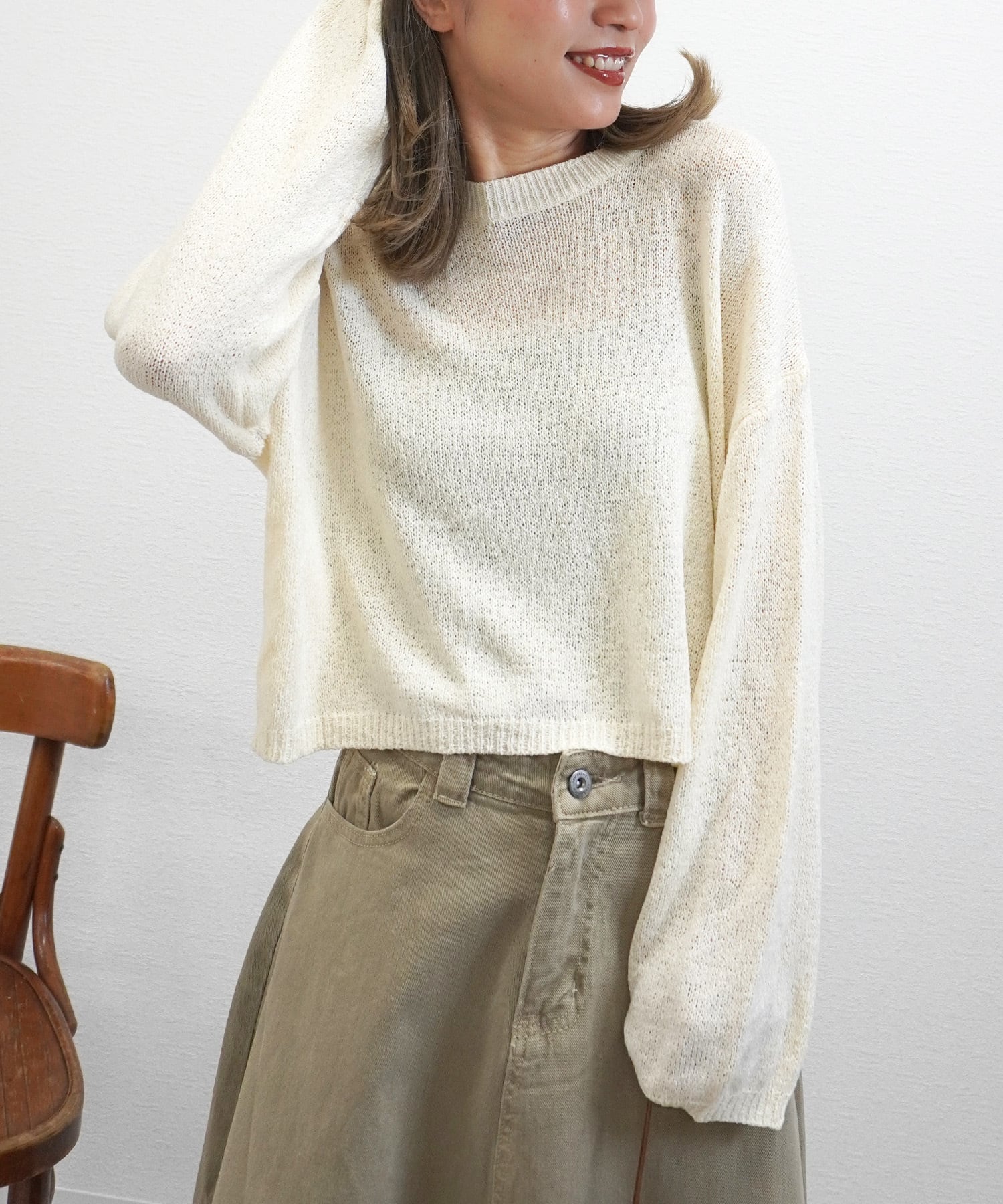 シアーニットプルオーバーは、軽やかなシアー素材が魅力のニットです。やわらかな肌触りで、心地よい着心地を実現しました。リラックスしたシルエットが体型を優しくカバーしつつ、女性らしい印象を演出します。デニムパンツやスカートと合わせてカジュアルなスタイルにも、オフィスコーディネートにも最適です。この春夏のスタイルに、ぜひ加えてみてください!