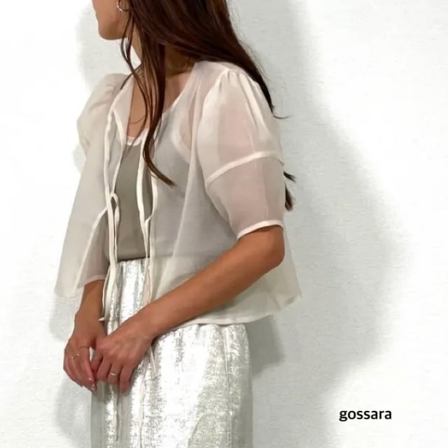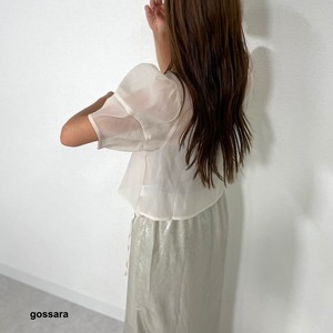 女性らしいフェミニンな印象を演出するランタンSVクロップドブラウス。