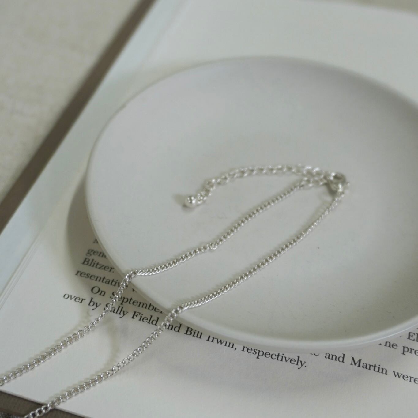 流れるようなチェーンが首元に美しいラインを描き、どんなコーディネートにも華やかさを添えます。